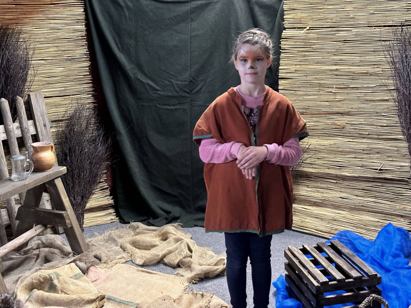 Zunächst kann in den Requisiten gestöbert werden. Dann entwickeln wir zusammen ein kleines Theaterstück und lassen uns von unserer Maskenbildnerin schminken. Anschließend suchen wir uns Kostüme aus und bauen mit unserem Bühnenbildner eine kleine Bühne. Zum Abschluss führen wir unser eigenes Stück auf.