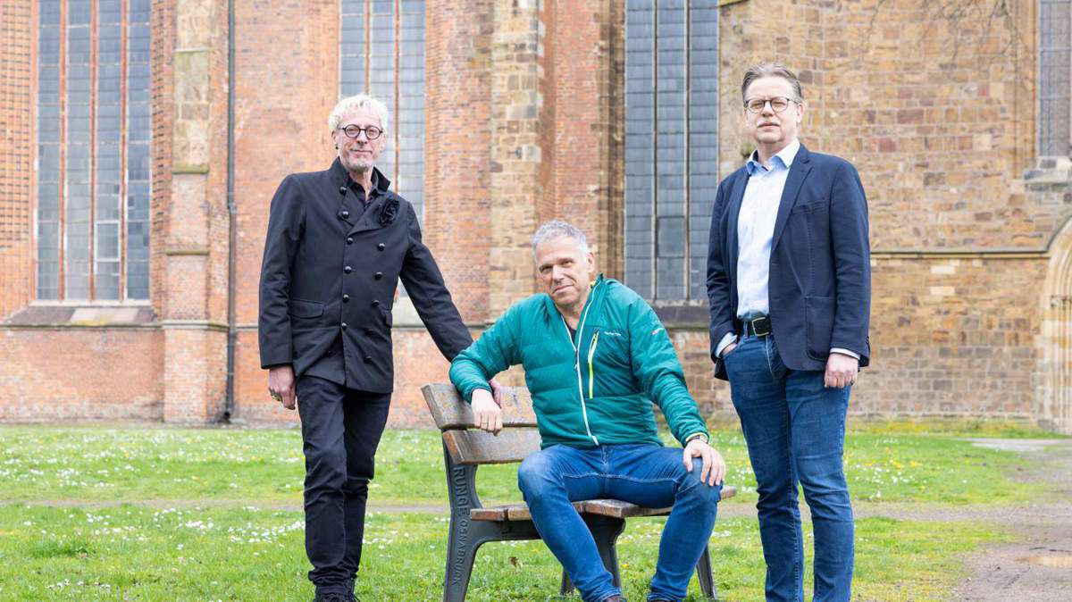 Voller Vorfreude: Volker Schwennen (v. l.), Hans König und Ralf Böse stellen das neue Stück auf dem Verdener Domplatz vor.