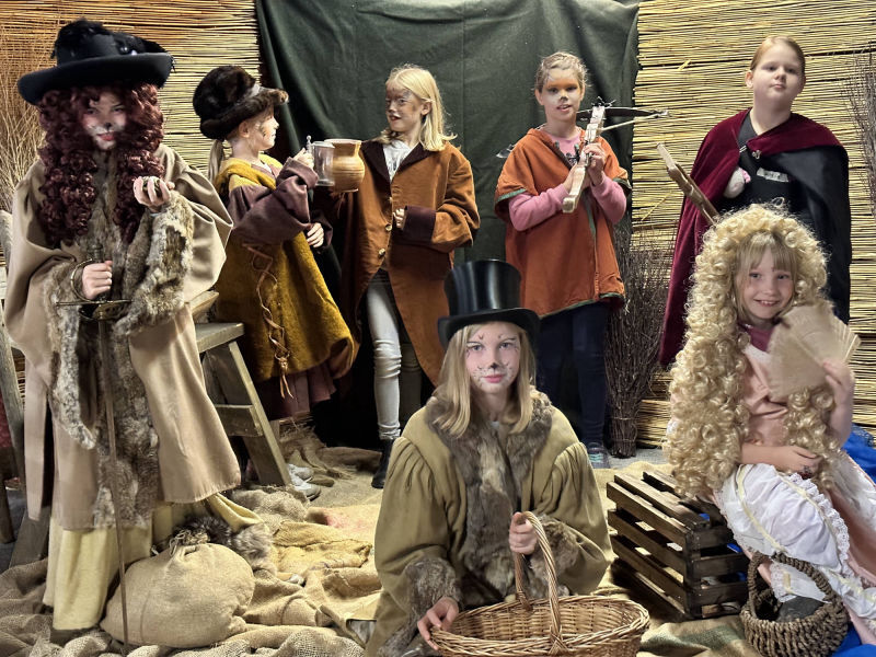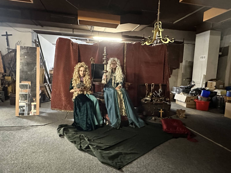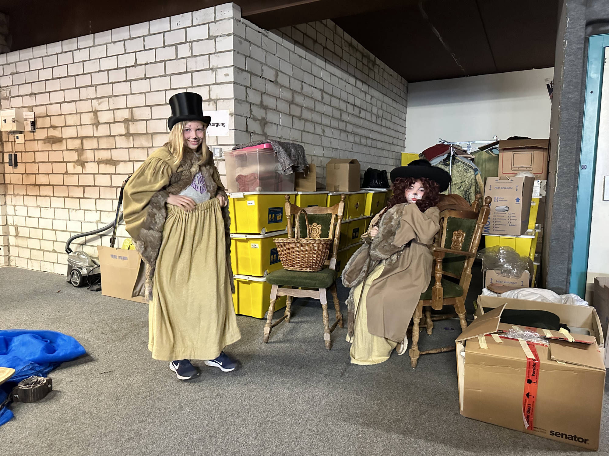 Zunächst kann in den Requisiten gestöbert werden. Dann entwickeln wir zusammen ein kleines Theaterstück und lassen uns von unserer Maskenbildnerin schminken. Anschließend suchen wir uns Kostüme aus und bauen mit unserem Bühnenbildner eine kleine Bühne. Zum Abschluss führen wir unser eigenes Stück auf.