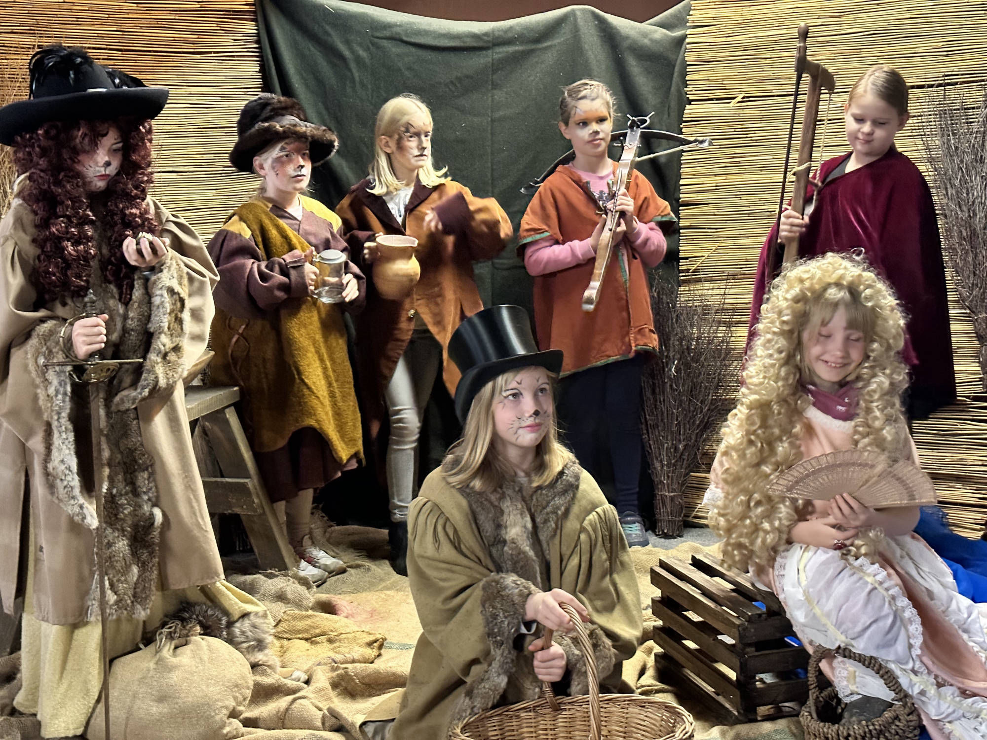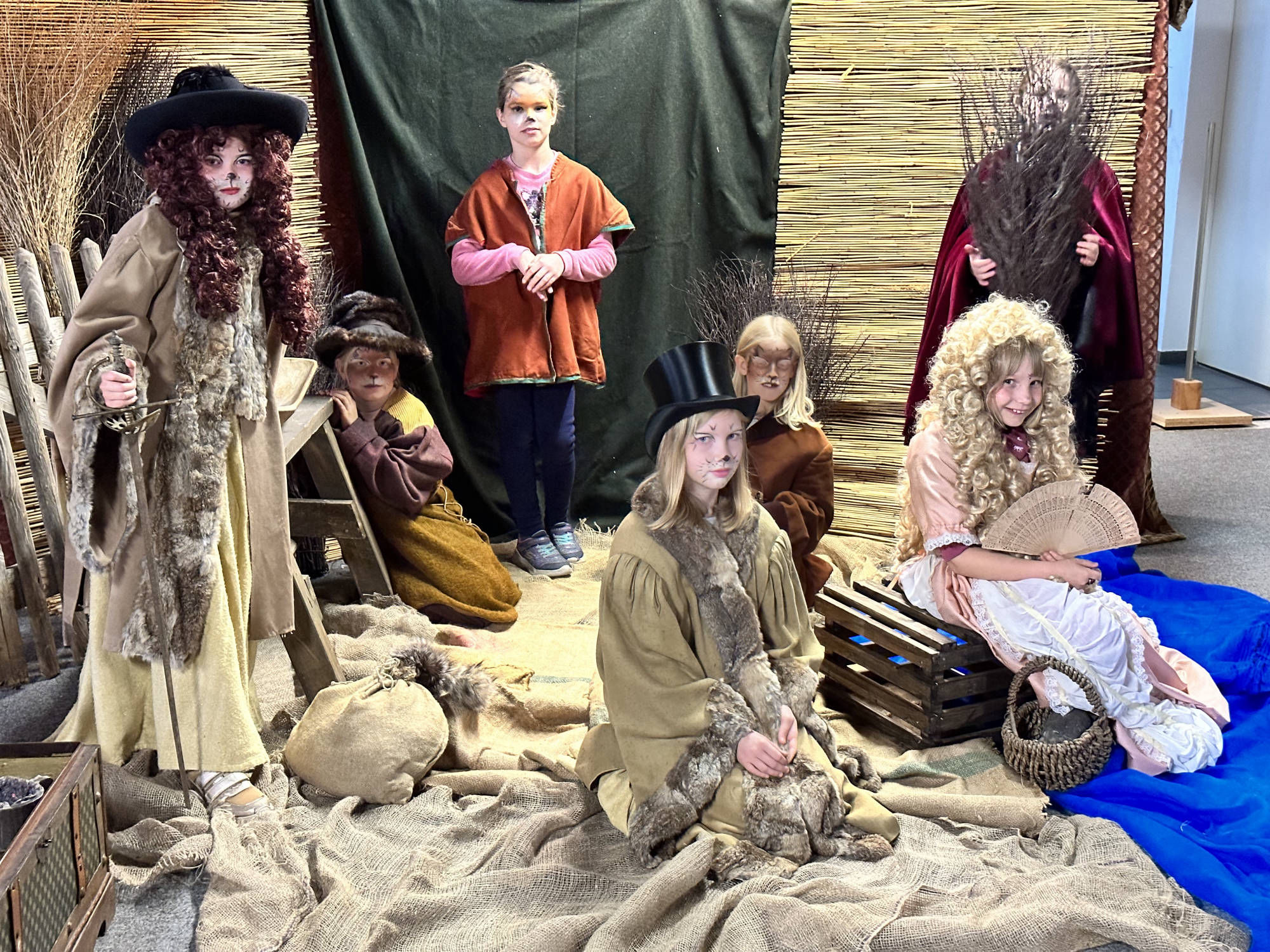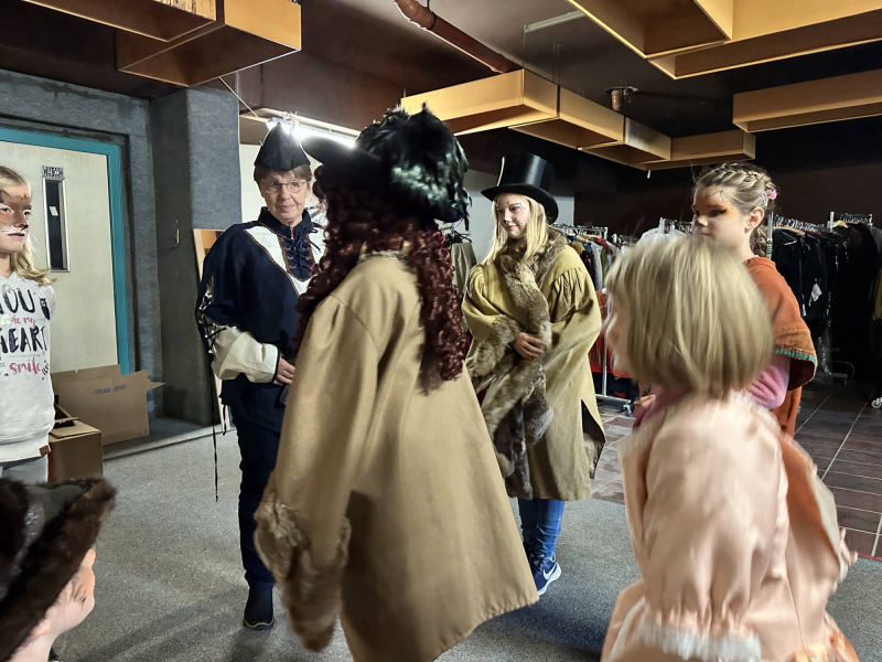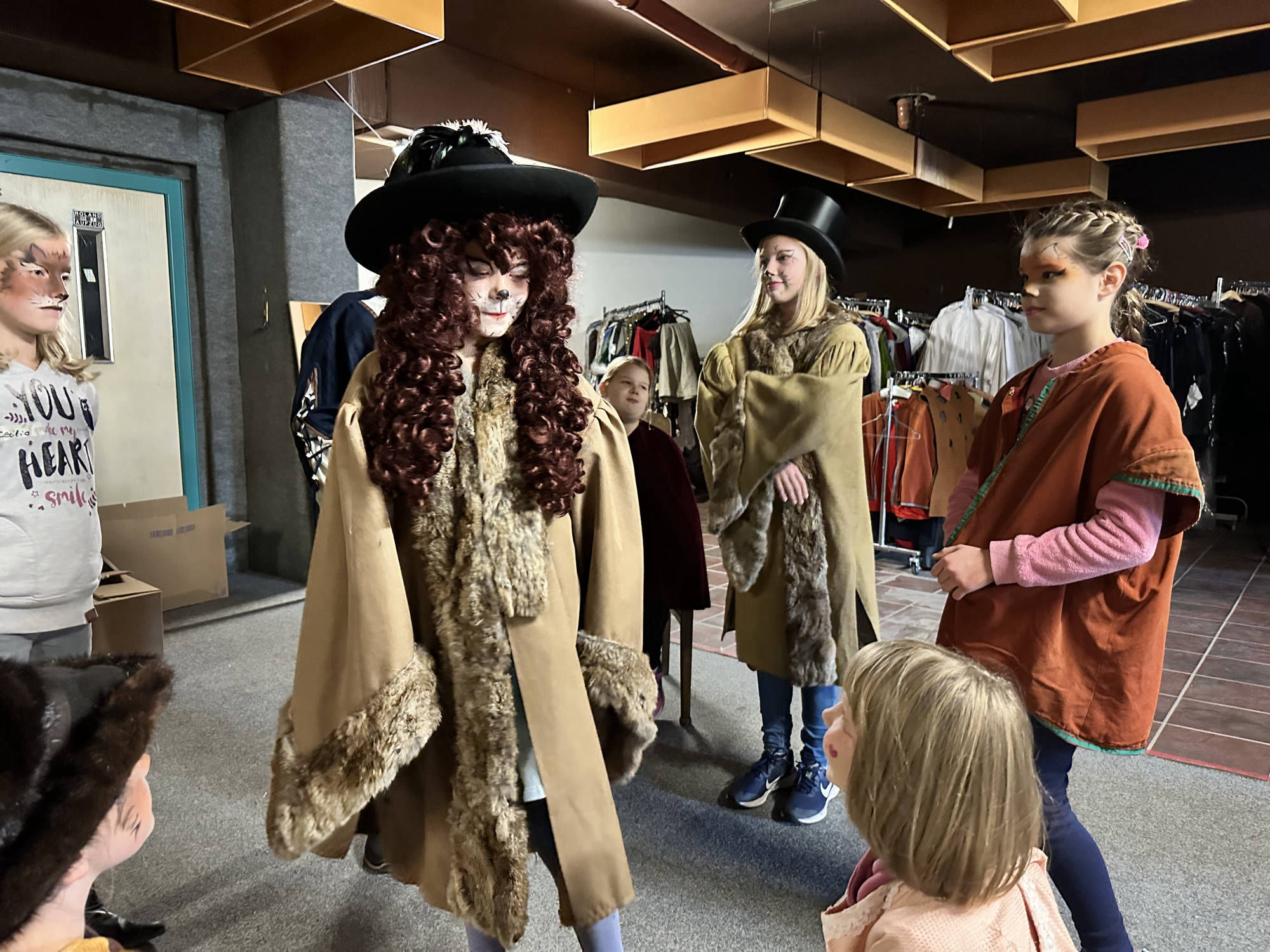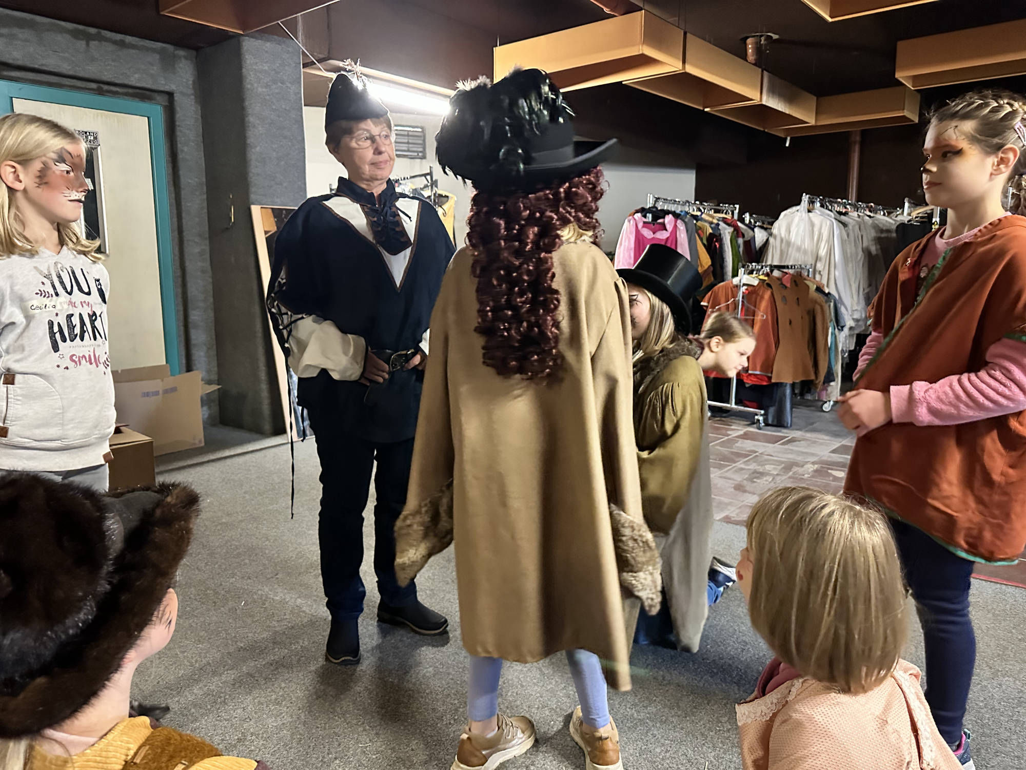 Mit viel Kreativität und viel Spaß gingen die Kinder an die Sache: Zuerst wurde in den Requisiten gestöbert, dann wurden die Kinder nach eigenen Wünschen von unserer Maskenbildnerin Ilenia geschminkt. Danach wurden Kostüme ausgesucht und anschließend gestalteten alle gemeinsam ein Bühnenbild.