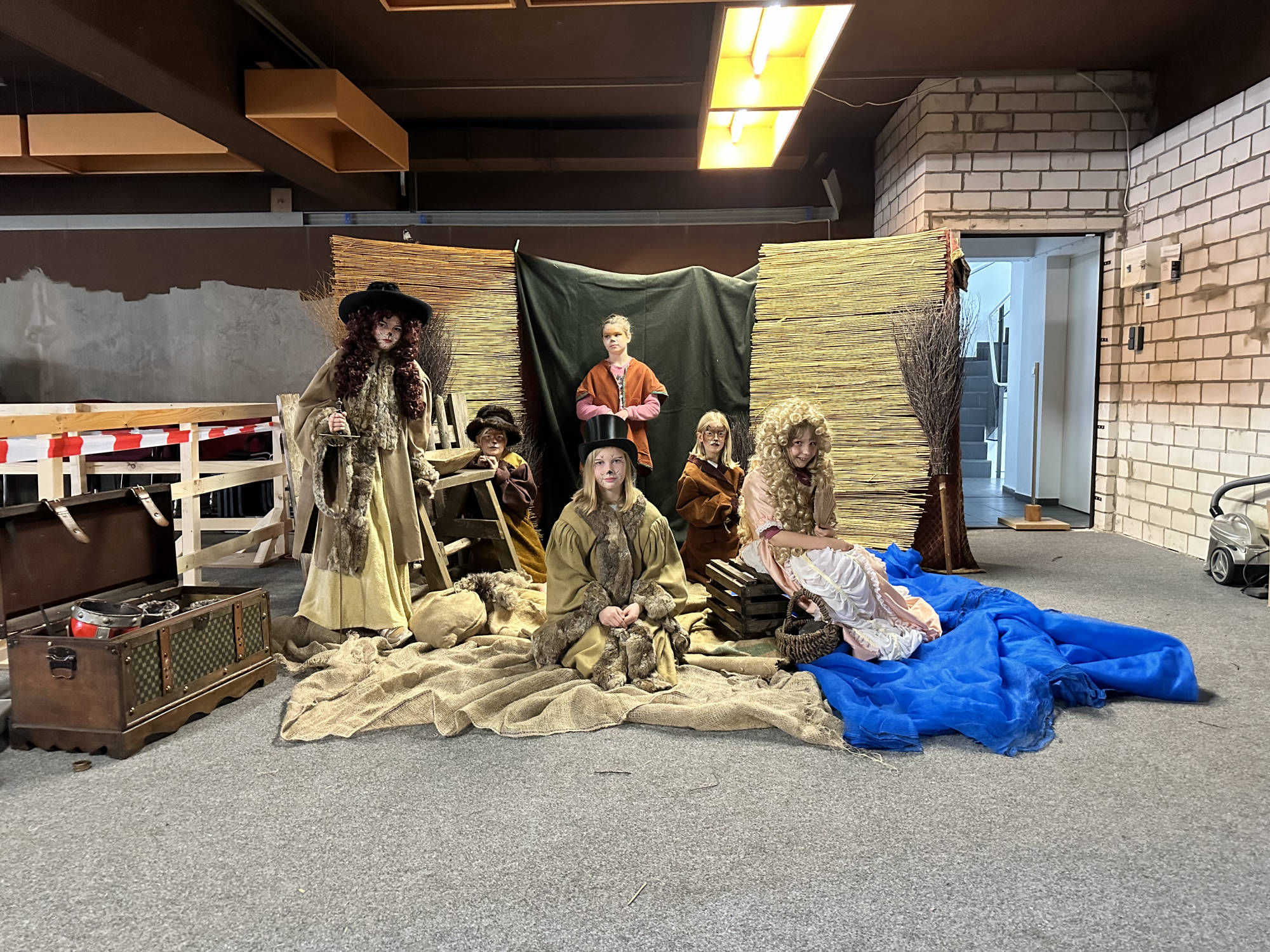 Und am Ende entwickelten die Kinder noch ein eigenes kleines gut durchdachtes und sehr witziges Bühnenstück, welches Sie vor den begeisterten Augen der Unterstützenden im Hintergrund, unserer Requisiteurin Ilse und deren Kollegin Gaby sowie unseres Produktionsleiters Volker, zur Aufführung brachten! Das war super – Ihr ward großartig!!!